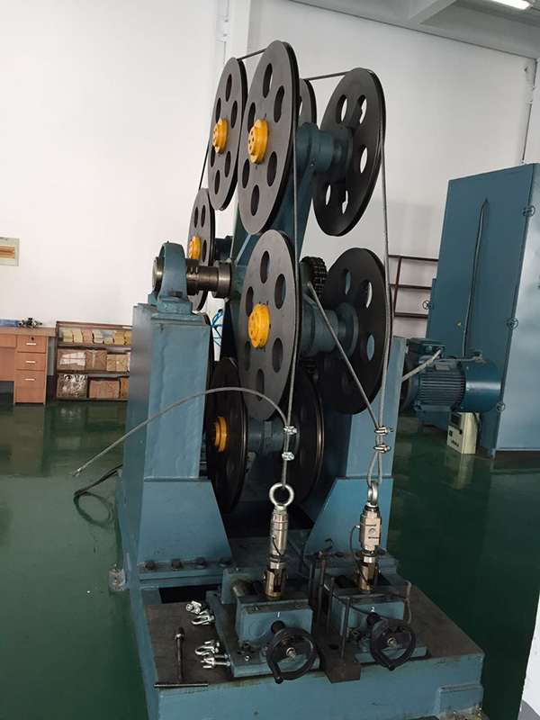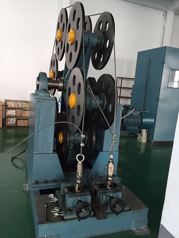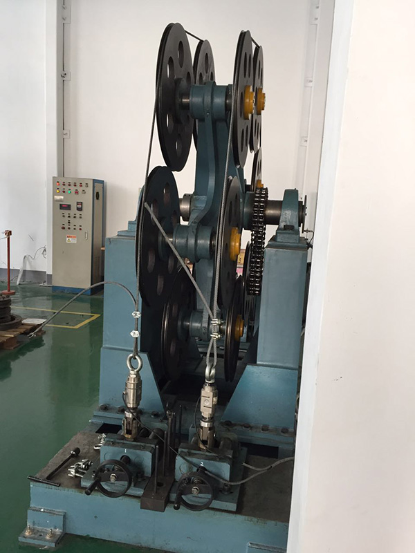 2.2可通過氣缸裝置調(diào)節(jié)鋼絲繩張緊力、并保持恒定。2根鋼絲繩試驗(yàn)的張力控制獨(dú)立,并在控制柜上獨(dú)立顯示。